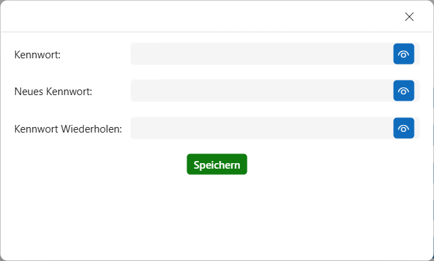 Ändern Sie das System Passwort für die Admins. Es öffnet sich ein Fenster, in dass Sie das alte Passwort und zweimal das neue Passwort eintragen. Mit dem Augen-Icon in jedem Feld, können Sie sich das Passwort in Klarzeichen anzeigen lassen, um es abzugleichen. Klicken Sie anschließend auf Speichern, um das neue Passwort zu aktivieren.