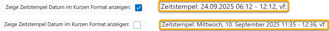Darunter können Sie noch auswählen, ob das Datum im Kurzformat oder im Langformat dargestellt werden soll.