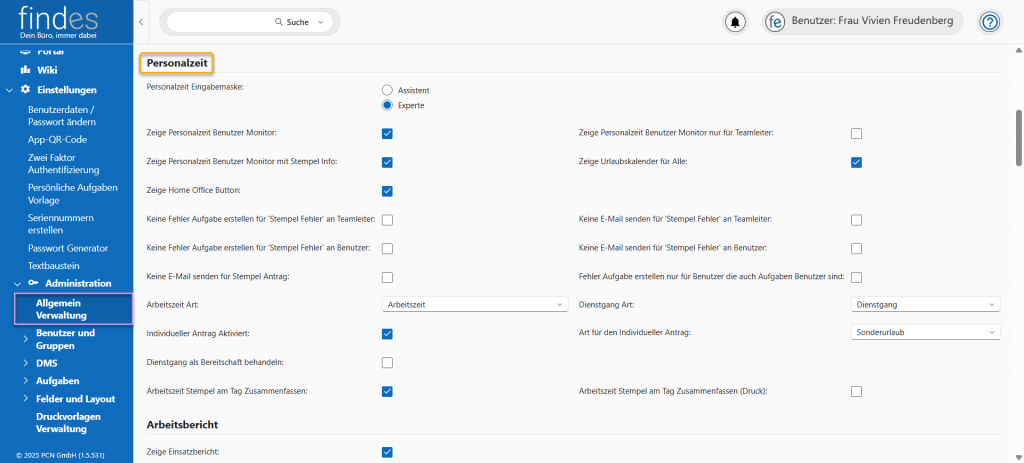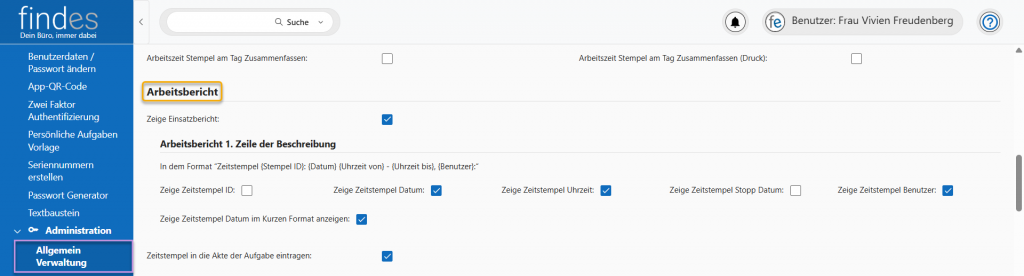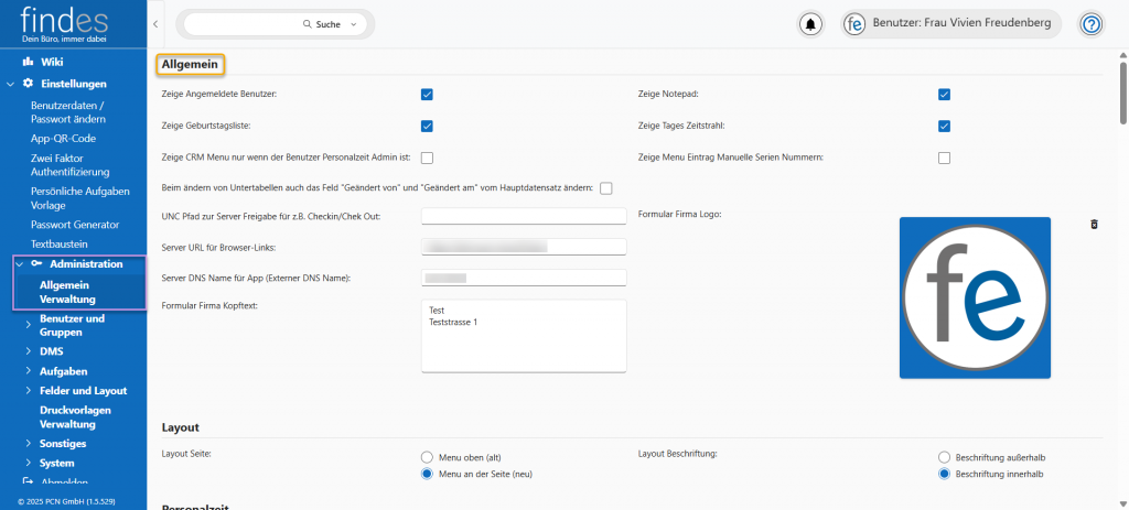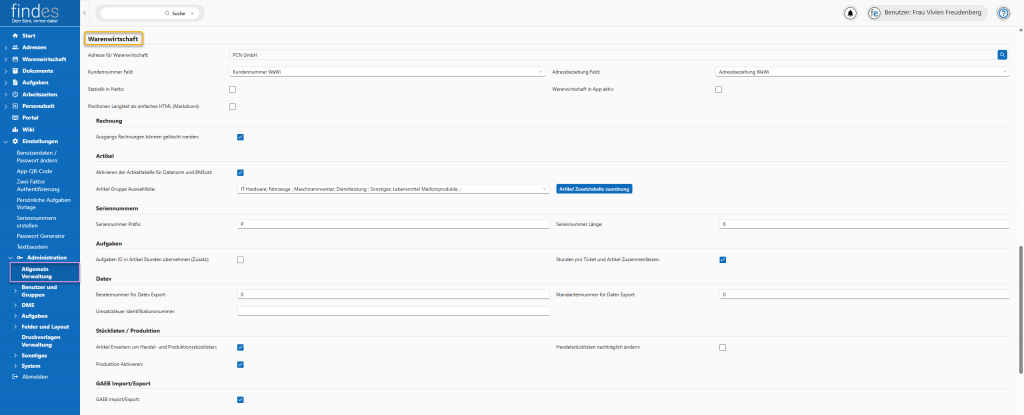 Speichern Sie Ihre Änderungen bevor Sie den Punkt „Allgemeine Verwaltung“ verlassen. Damit manchen Einstellungen übernommen werden, müssen Sie sich aus findes ab- und wieder anmelden.