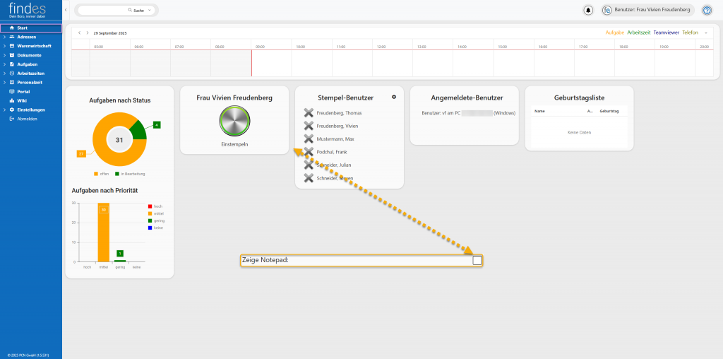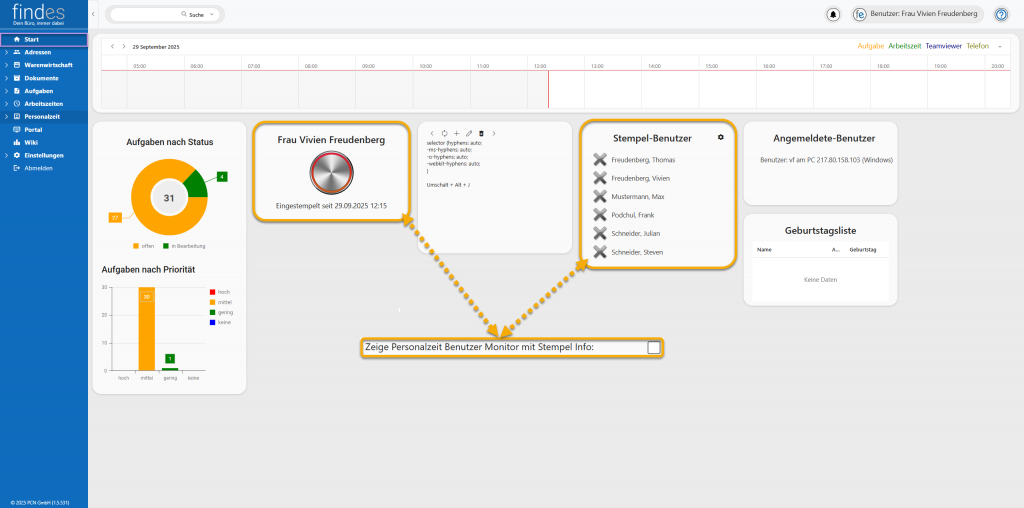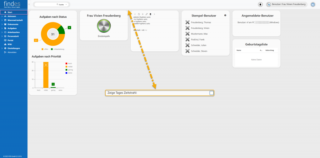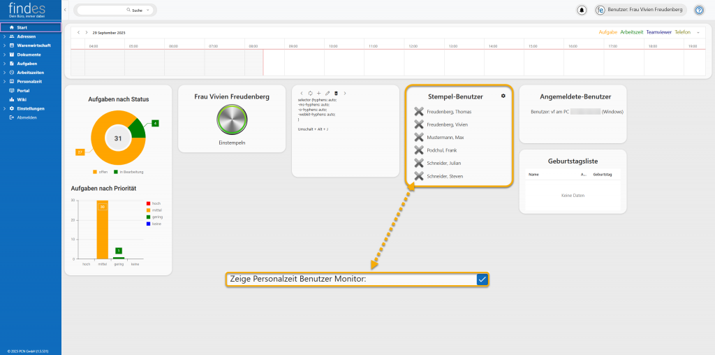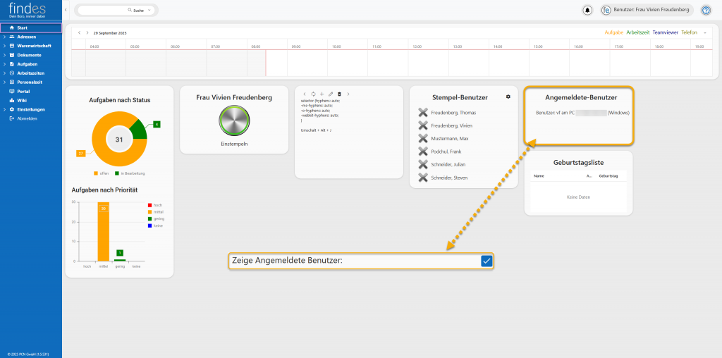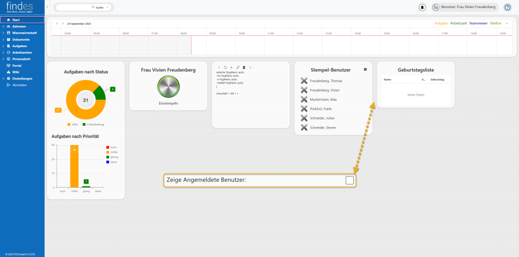 Durch die Anklickbox können Sie auswählen, ob im Dashboard die Stempel-Benutzer angezeigt werden oder nicht.