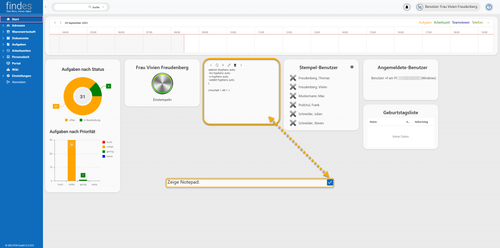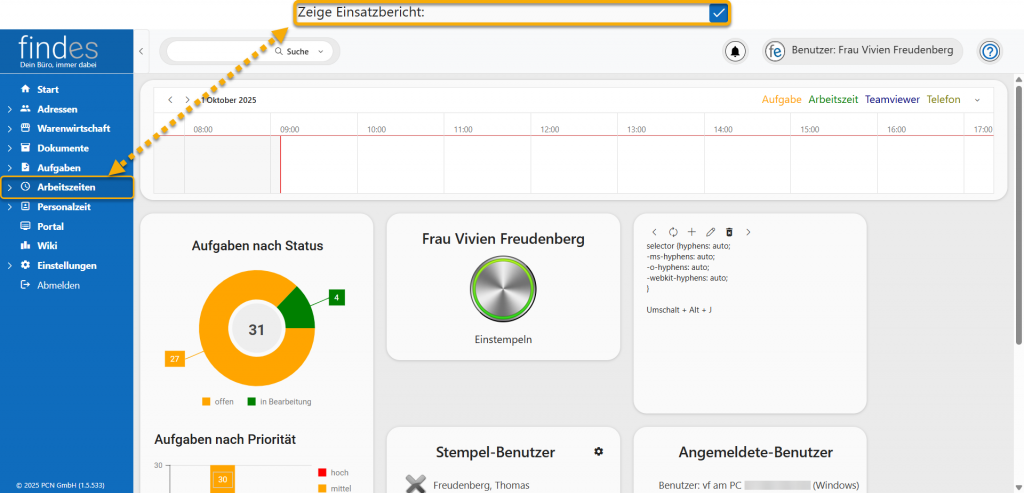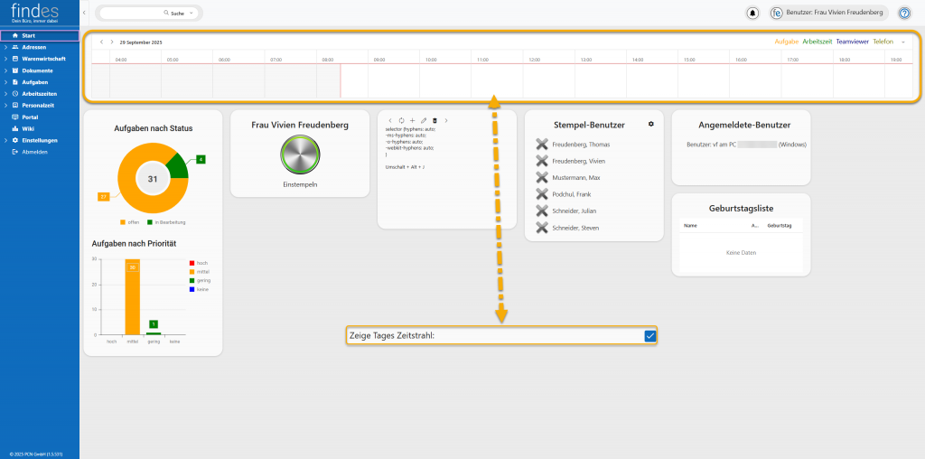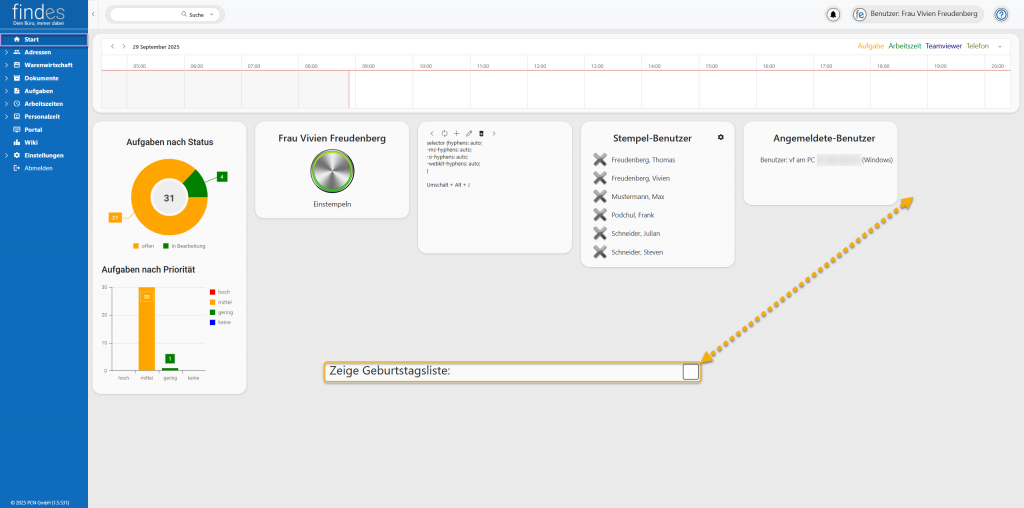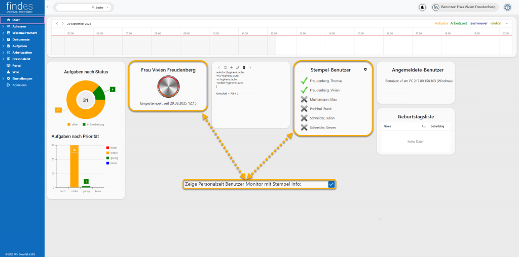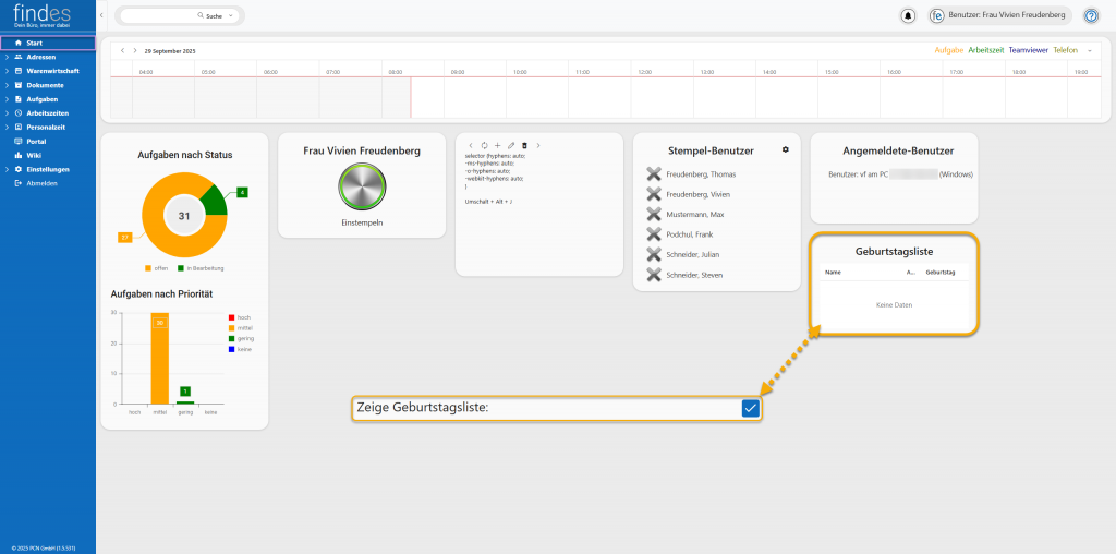 Durch die Anklickbox können Sie auswählen, ob im Dashboard die Stempel-Benutzer angezeigt werden oder nicht.