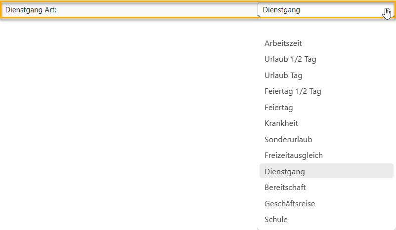 Wählen Sie in der Dropdown-Liste die Art des Dienstgangs aus.