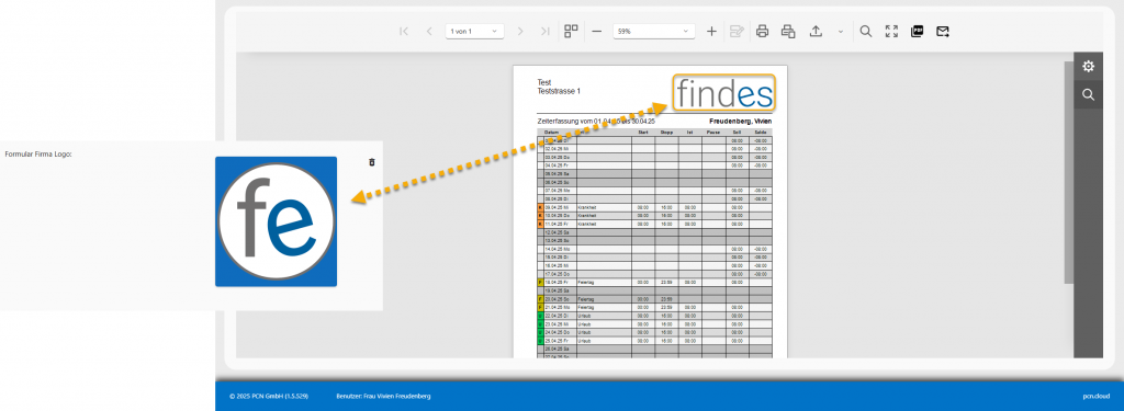 Wählen Sie das Logo aus, dass in findes Formularen stehen soll, z.B. im PDF-Formular der Personal Abrechnung. Mit einem Klick auf das Logo öffnet sich der Datei Explorer Ihres PCs. Suchen Sie Ihr Firmenlogo heraus und klicken auf Öffnen. Möchten Sie das Logo löschen, klicken Sie rechts auf das kleine Mülltonnen-Icon.