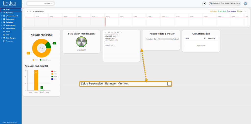 Ist der Haken gesetzt, können nur Benutzer, die Personalzeit Admins sind, im Dashboard sehen, welcher Benutzer eingestempelt ist und welcher nicht.