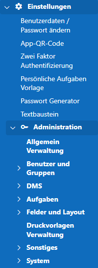 Den Zugang zu den administrativen Einstellungen haben nur die Gruppe der Admins, da diese Einstellungen für das Unternehmensübergreifende findes gelten.