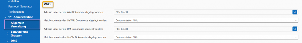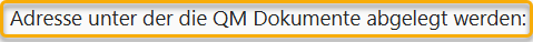 Wählen Sie über den Lupen-Button die Adresse aus, unter der alle von der Gruppe QM (Qualitätsmanagement) erstellten Wiki Dokumente abgelegt werden sollen. Es öffnet sich ein Fenster und mit einem Doppelklick auf die gewünschte Adresse, wird diese ausgewählt und erscheint im Feld.