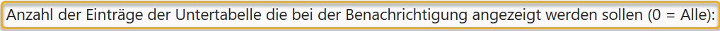 Wählen Sie aus, wie viele Einträge aus der Untertabelle Sie bei der Benachrichtigung durch die Glocke sehen möchten. Automatisch sind drei Eintragungen ausgewählt. Tragen Sie 0 ein, werden alle Einträge angezeigt.