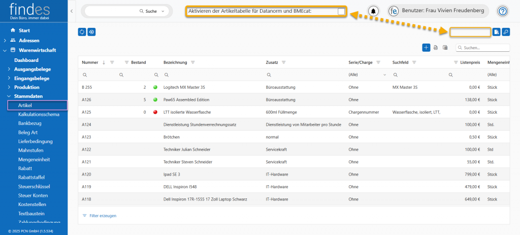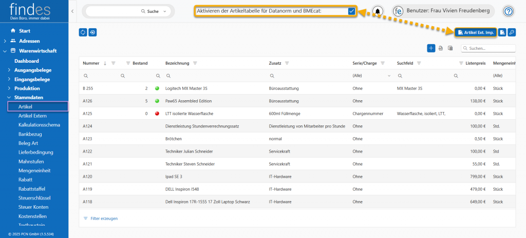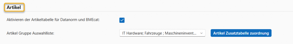 Ist dieser Haken gesetzt, können Artikeltabellen mit Datanorm und BMEcat nach findes geladen werden.
