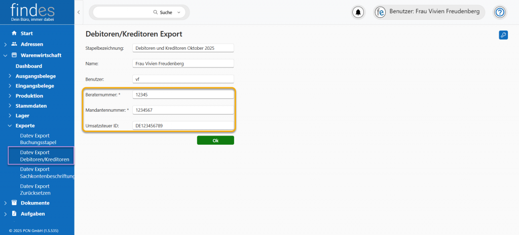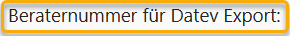 Tragen Sie hier die Beraternummer für den Datev Export im Modul Warenwirtschaft ein.
