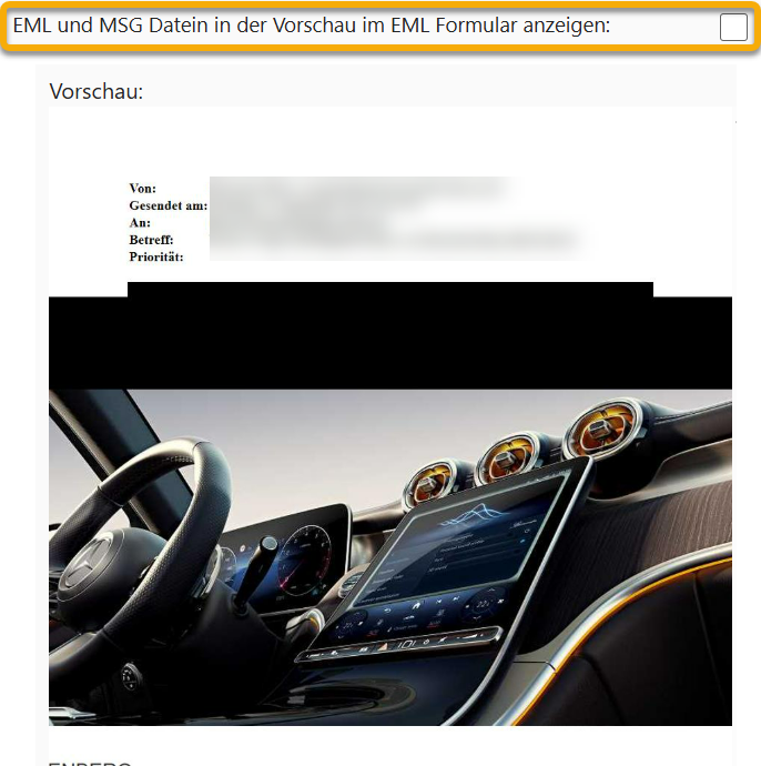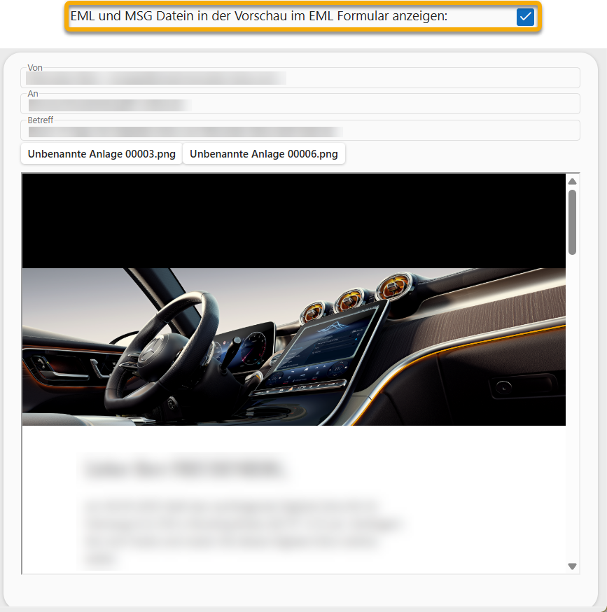 Wählen Sie aus, ob eine E-Mail, die Sie im DMS hochgeladen haben, als Bild oder als EML angezeigt werden soll.