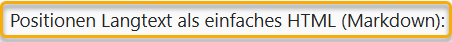 Ist der Haken gesetzt, können Sie durch Markdown (vereinfachte Auszeichnungssprache) den Langtext der einzelnen Positionen typografisch gestalten. Zum Beispiel durch # eine Überschrift markieren oder * für kursive und ** für Fettschrift.