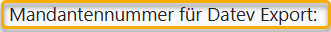 Tragen Sie hier die Mandantennummer für den Datev Export im Modul Warenwirtschaft ein.
