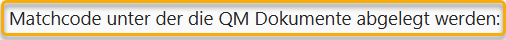 Wählen Sie in der Dropdown-Liste den Matchcode aus, unter dem das QM (Qualitätsmanagement) Wiki Dokument abgelegt werden soll und einsehbar ist.