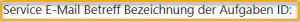 Tragen Sie ein, was im Betreff-Feld stehen soll, wenn Sie ein Service-E-Mail versenden, z.B. Aufgabenbenachrichtigungen.